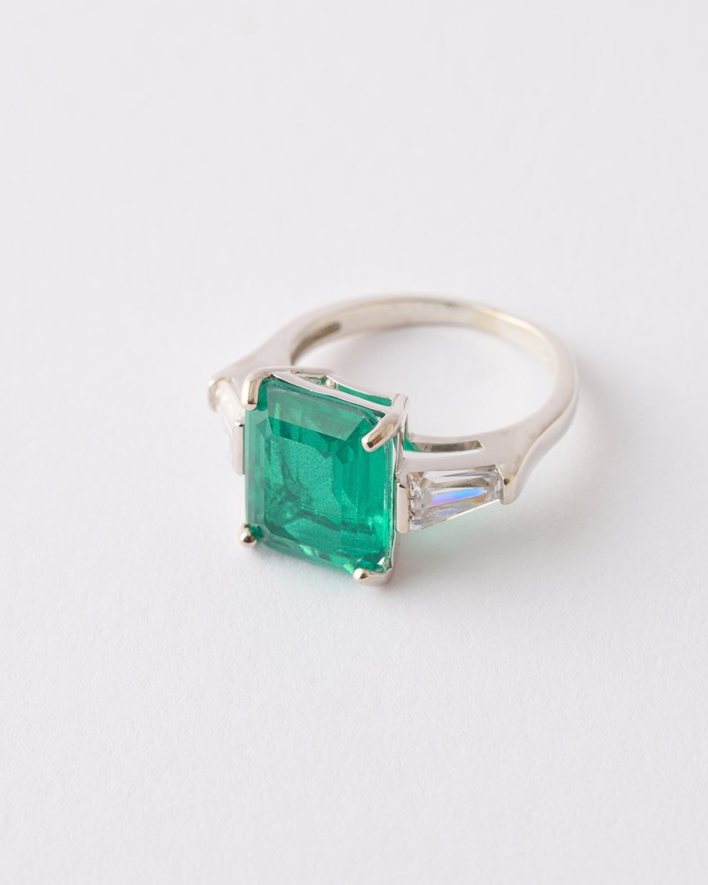 Anillo Circonita Esmeralda Cuadrada 12mm