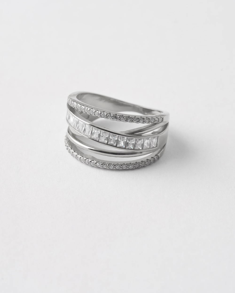 ANILLO CRUZADO MULTIBANDA CON CIRCONITAS COMBINADAS