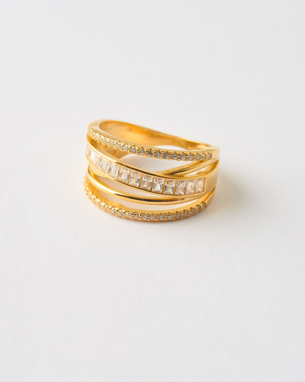 ANILLO CRUZADO MULTIBANDA CON CIRCONITAS COMBINADAS