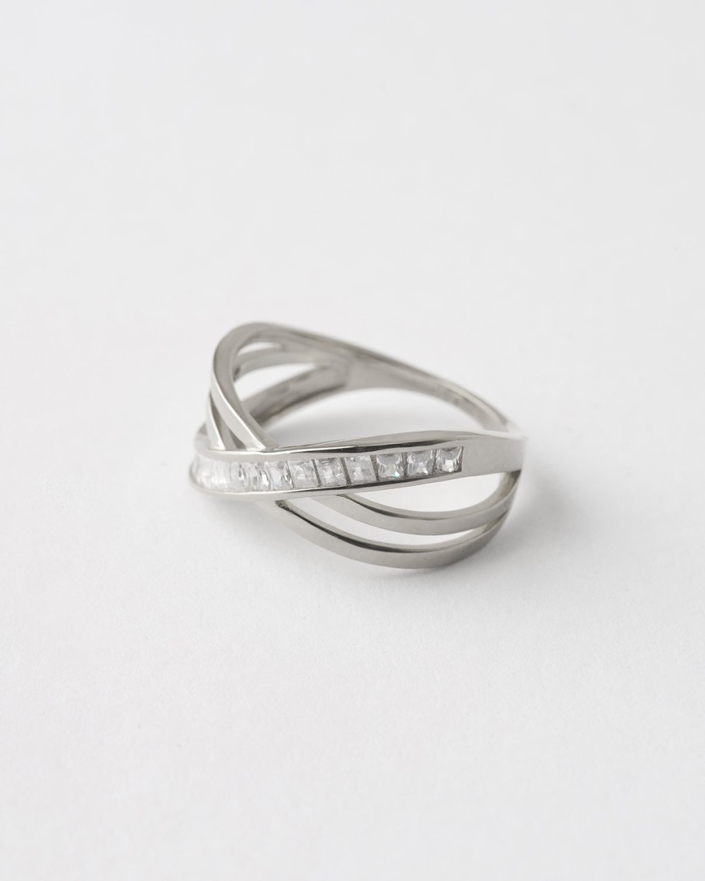 ANILLO CRUZADO TRIPLE BANDA CARRIL DE CIRCONITAS BAGUETTE
