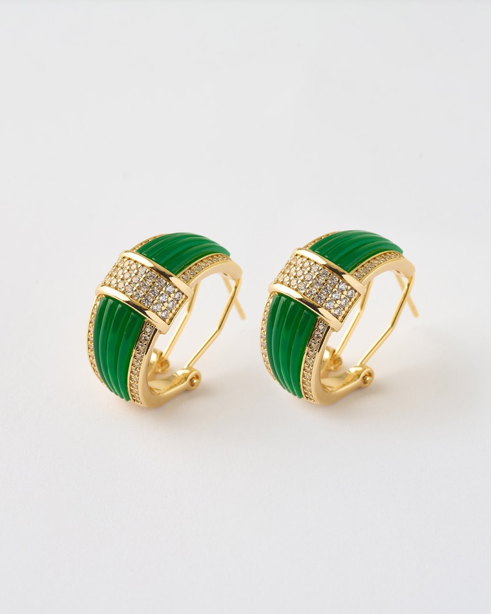 PENDIENTES ACANALADOS CIRCONITASY ESMALTE VERDE
