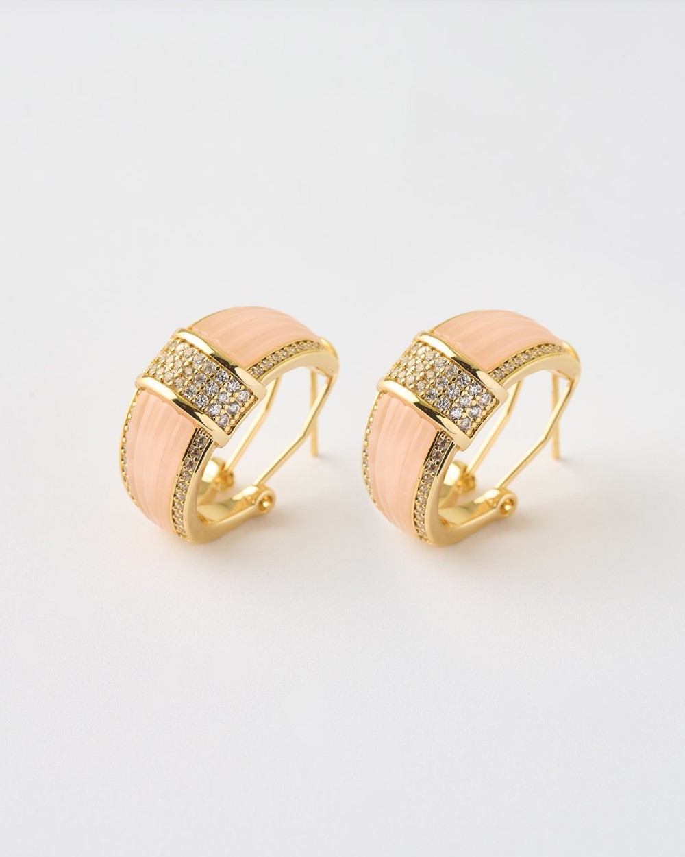 PENDIENTES ACANALADOS CIRCONITASY ESMALTE ROSA