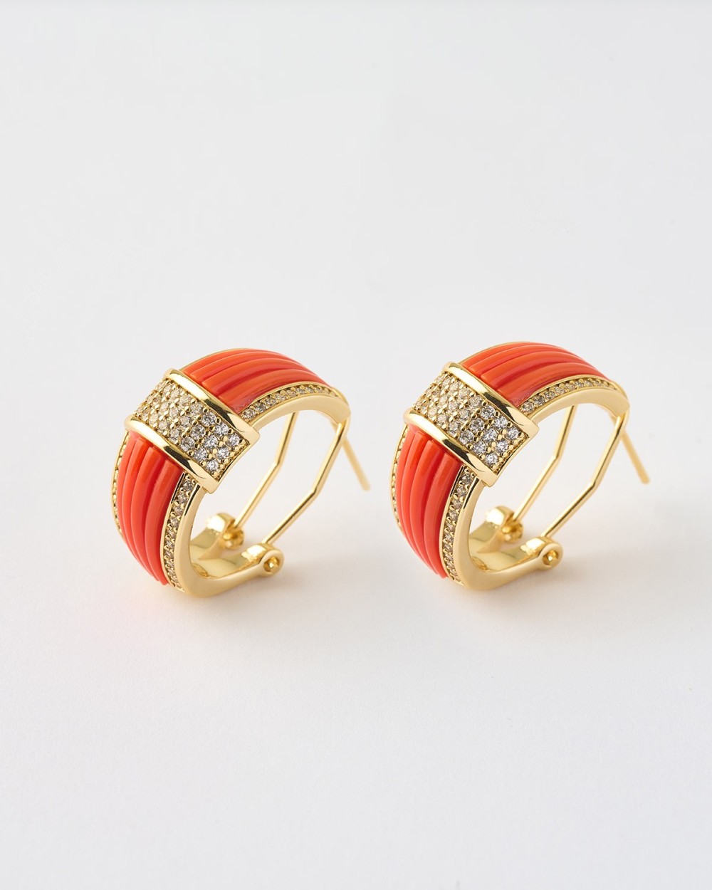 PENDIENTES ACANALADOS CIRCONITASY ESMALTE NARANJA