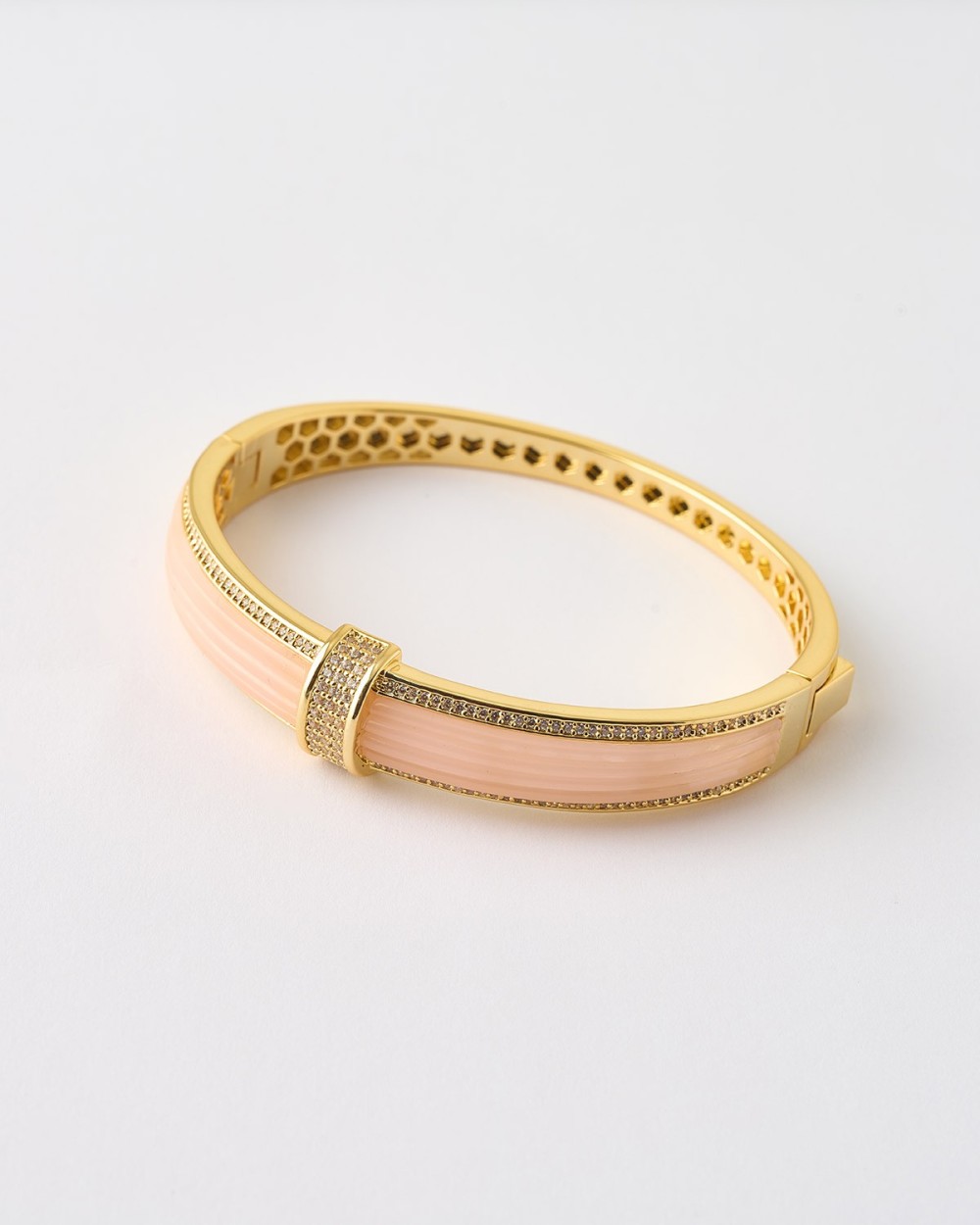 PULSERA ACANALADA CIRCONITAS ESMALTE ROSA