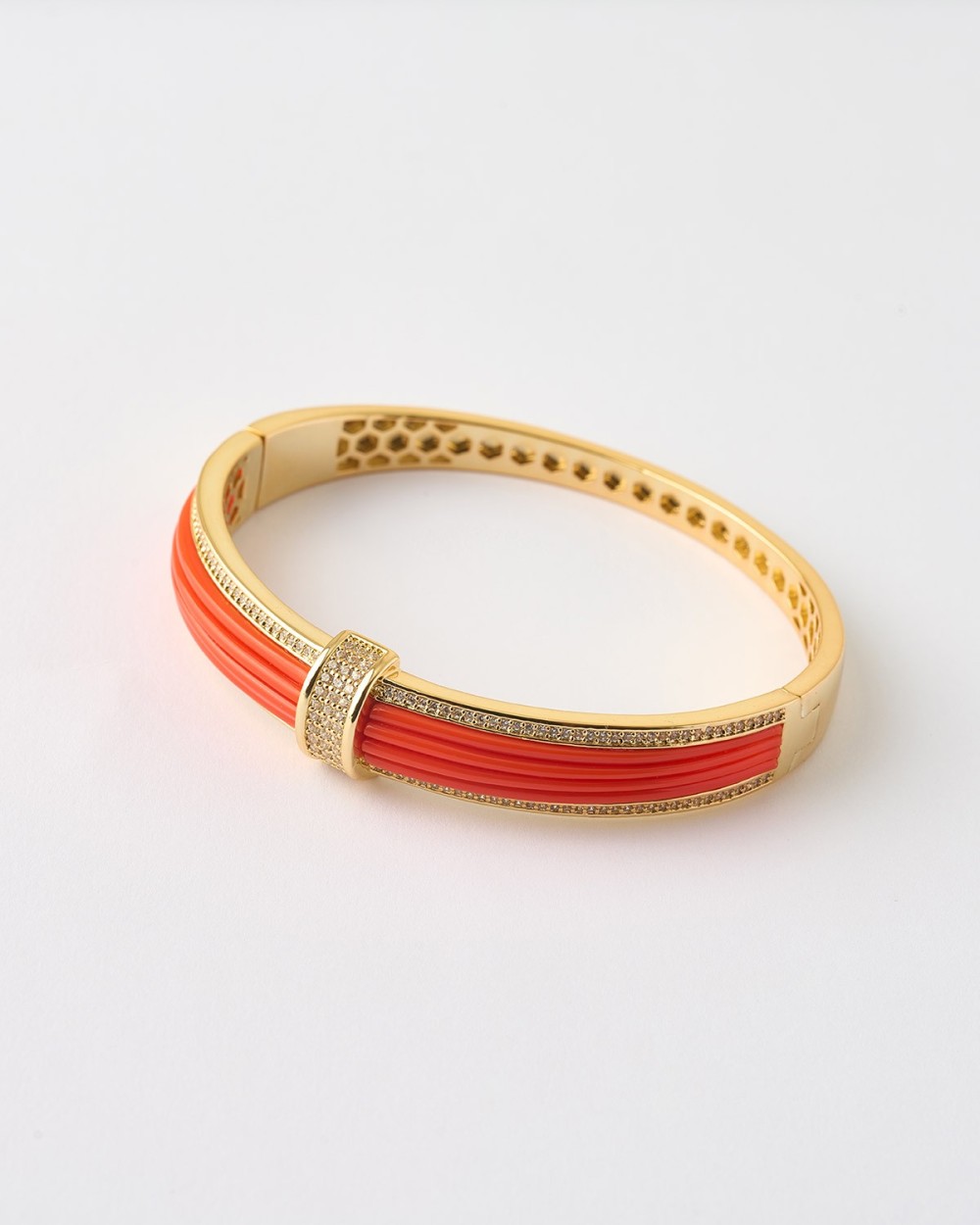 PULSERA ACANALADA CIRCONITAS ESMALTE NARANJA