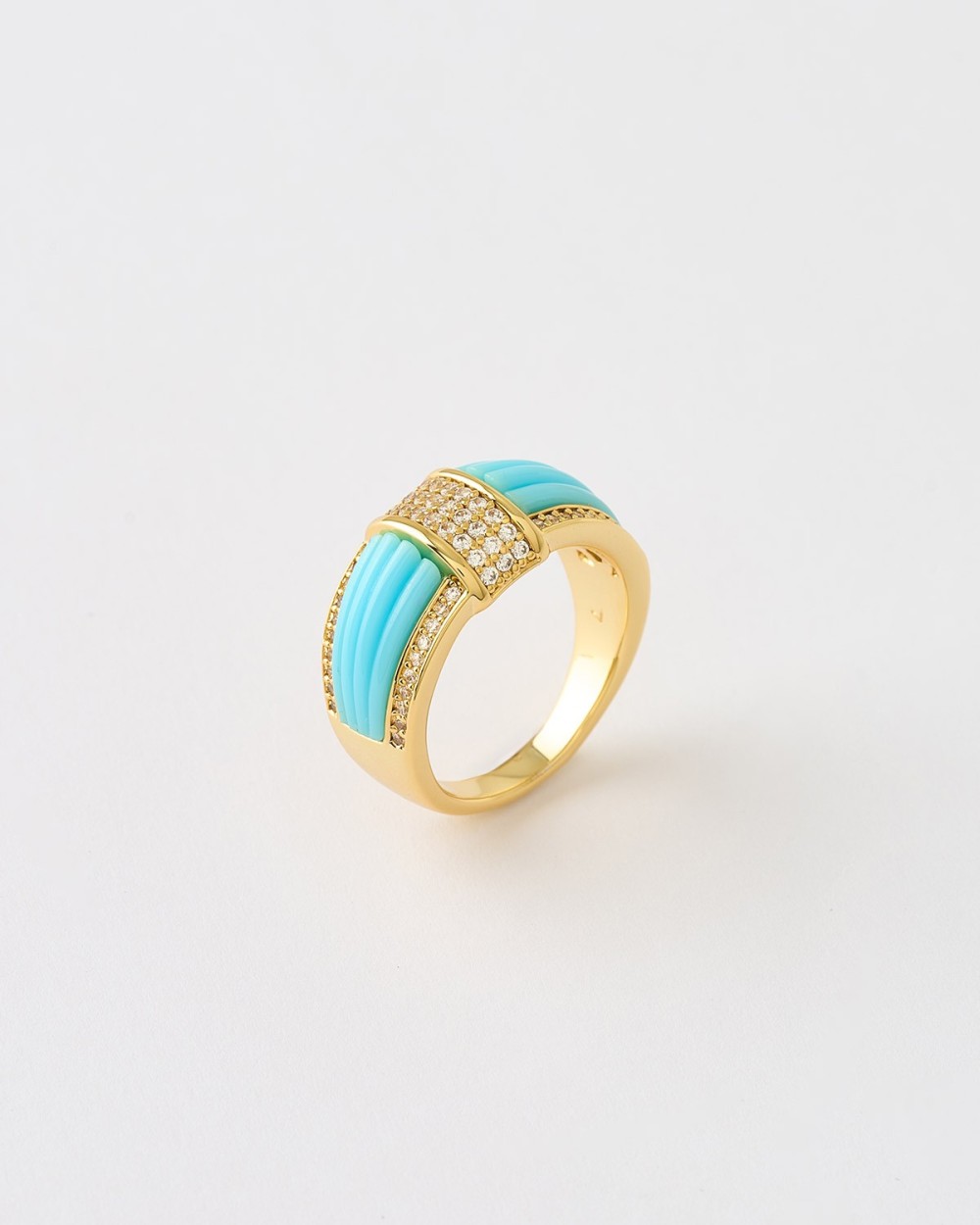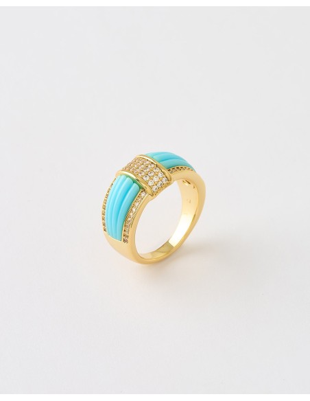 ANILLO ACANALADO CIRCONITAS Y ESMALTE TURQUESA