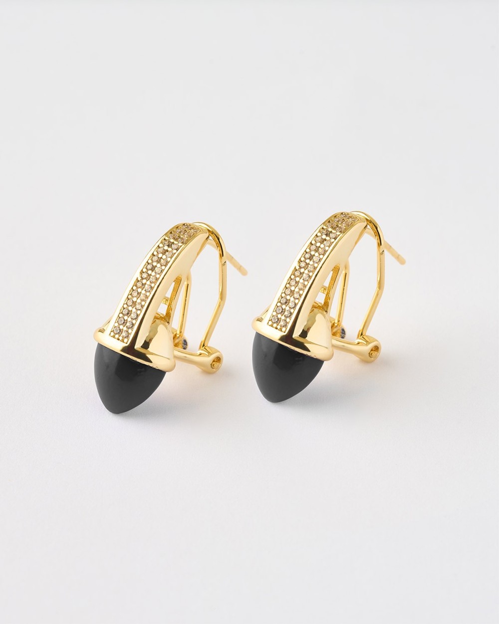 PENDIENTES BULLET CIRCONITAS Y ESMALTE NEGRO