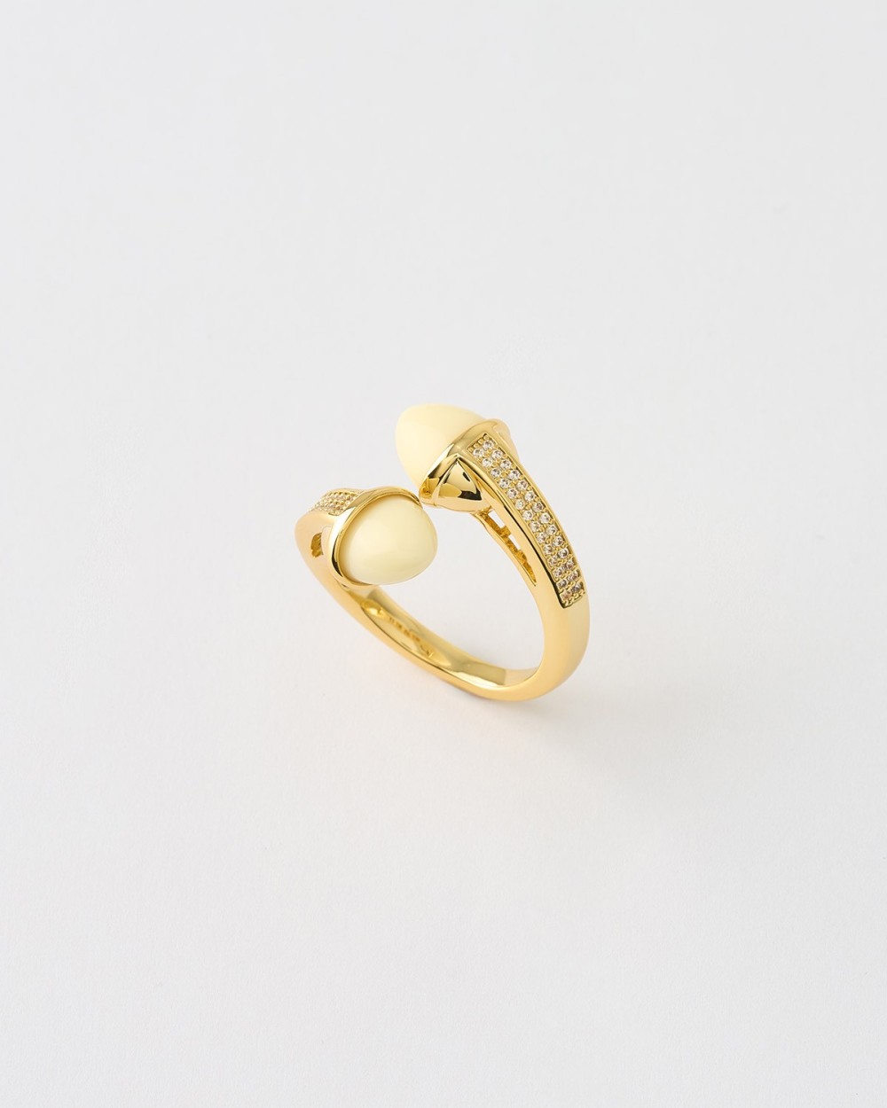 ANILLO BULLET CIRCONITAS Y ESMALTE BLANCO AJUSTABLE